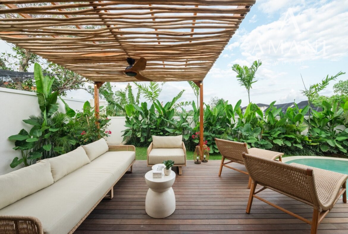 Vila je navrhnutá v modernom štýle s dôrazom na funkčnosť, súkromie a pohodlie. Uzavretý obývací a jedálenský priestor je plne zariadený a klimatizovaný, s veľkými presklenými dverami vedúcimi priamo k súkromnému bazénu a do upravenej záhrady.