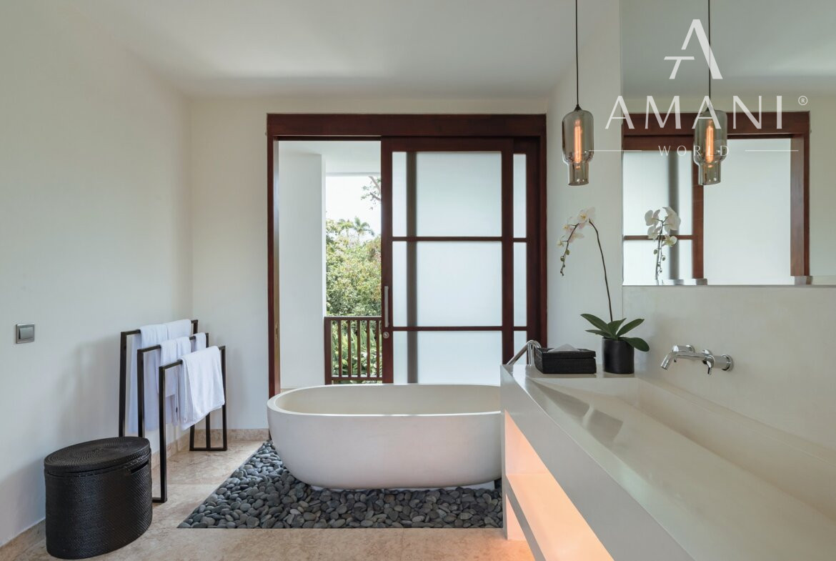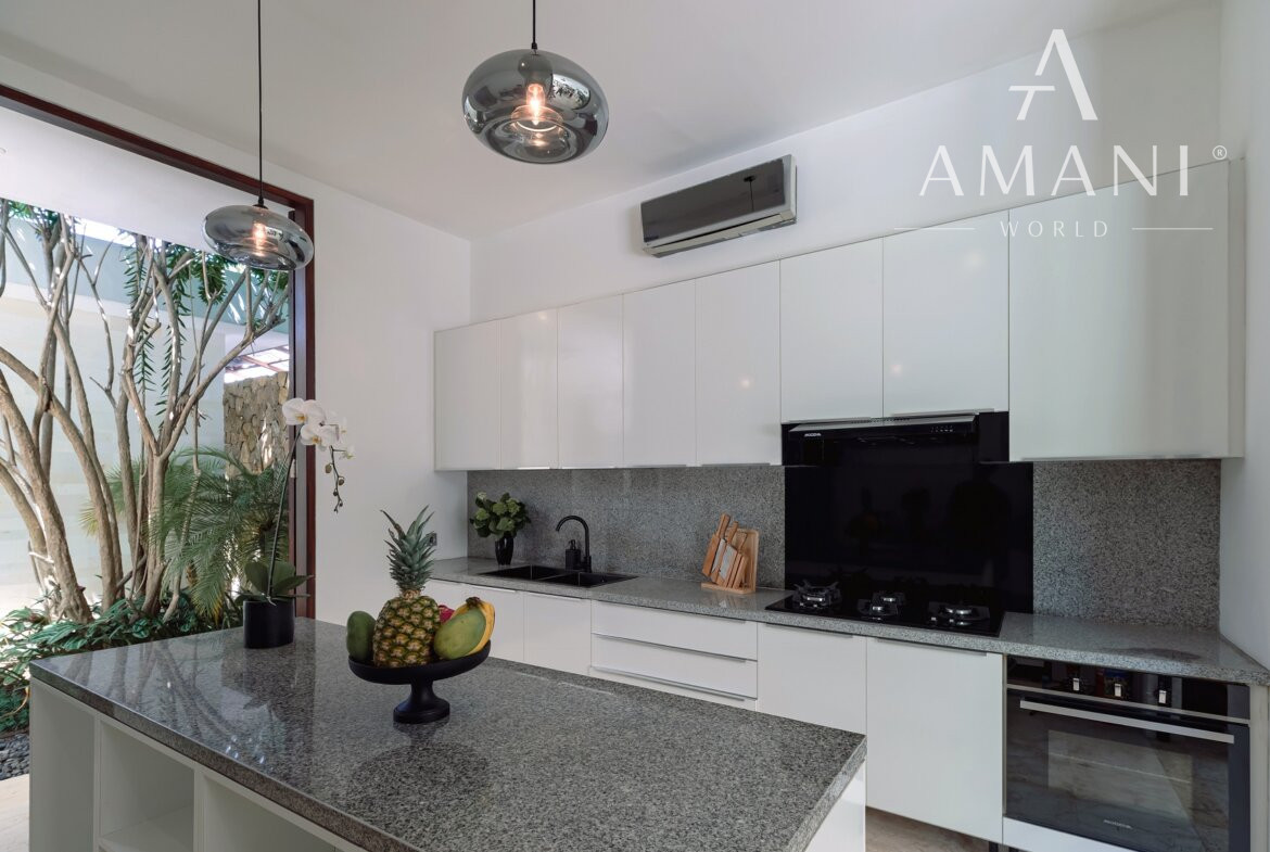 Vila bola navrhnutá renomovaným európskym architektom a postavená skúseným hotelovým developerom. Vyznačuje sa veľkorysým priestorom, vysokými stropmi a mramorovými podlahami v celom objekte. Dispozícia zahŕňa štyri priestranné spálne, z toho dve hlavné master suite so samostatnými šatníkmi, čo poskytuje vysoký štandard súkromia.